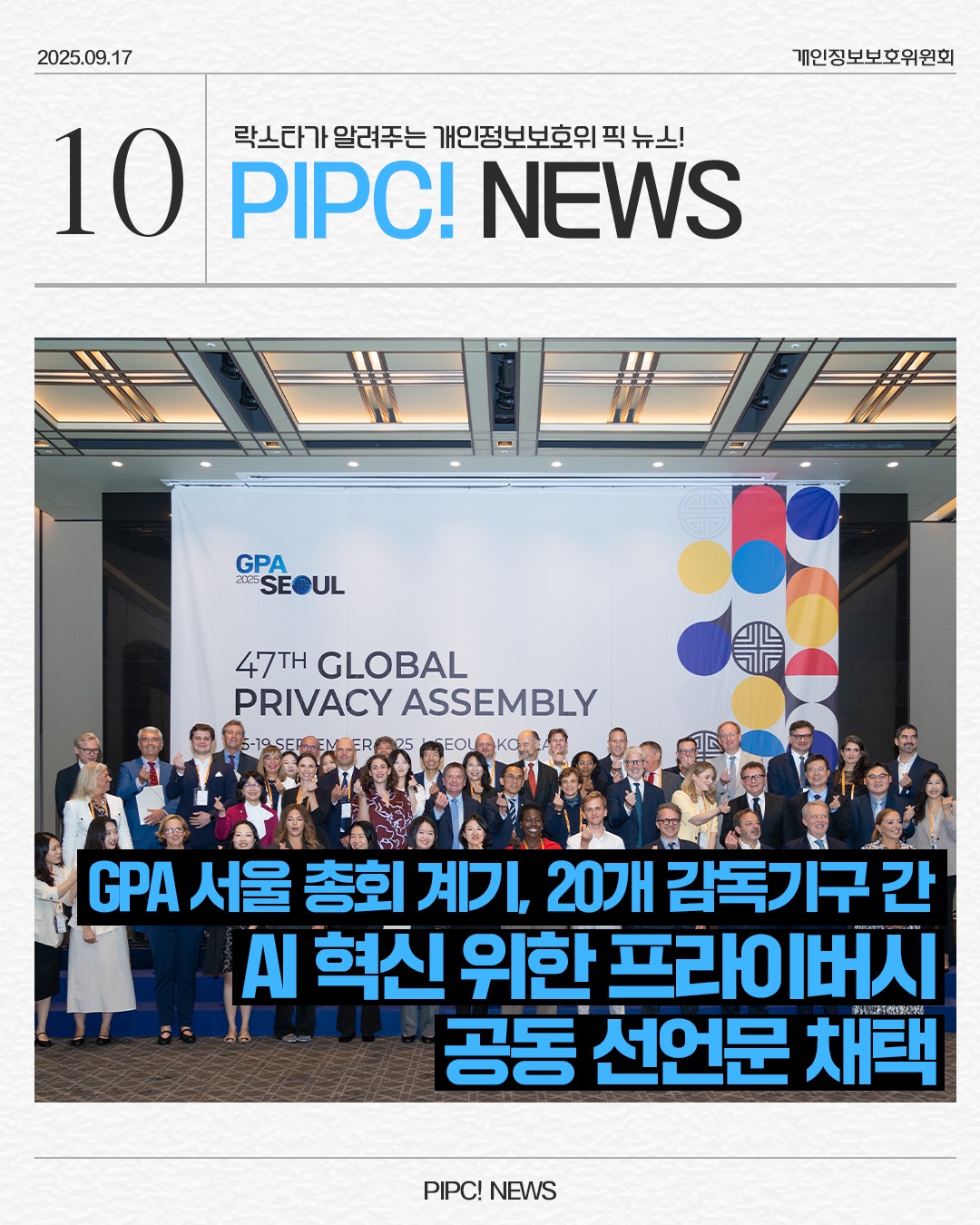GPA 서울 총회 계기 20개 감독기구 간 AI 혁신 위한 프라이버시 공동 선언문 채택