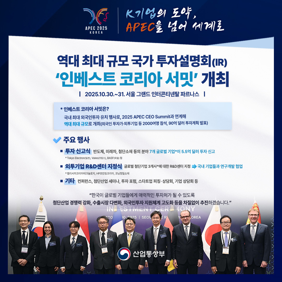 역대 최대 규모 국가 투자설명회(IR) ‘인베스트 코리아 서밋’ 개최