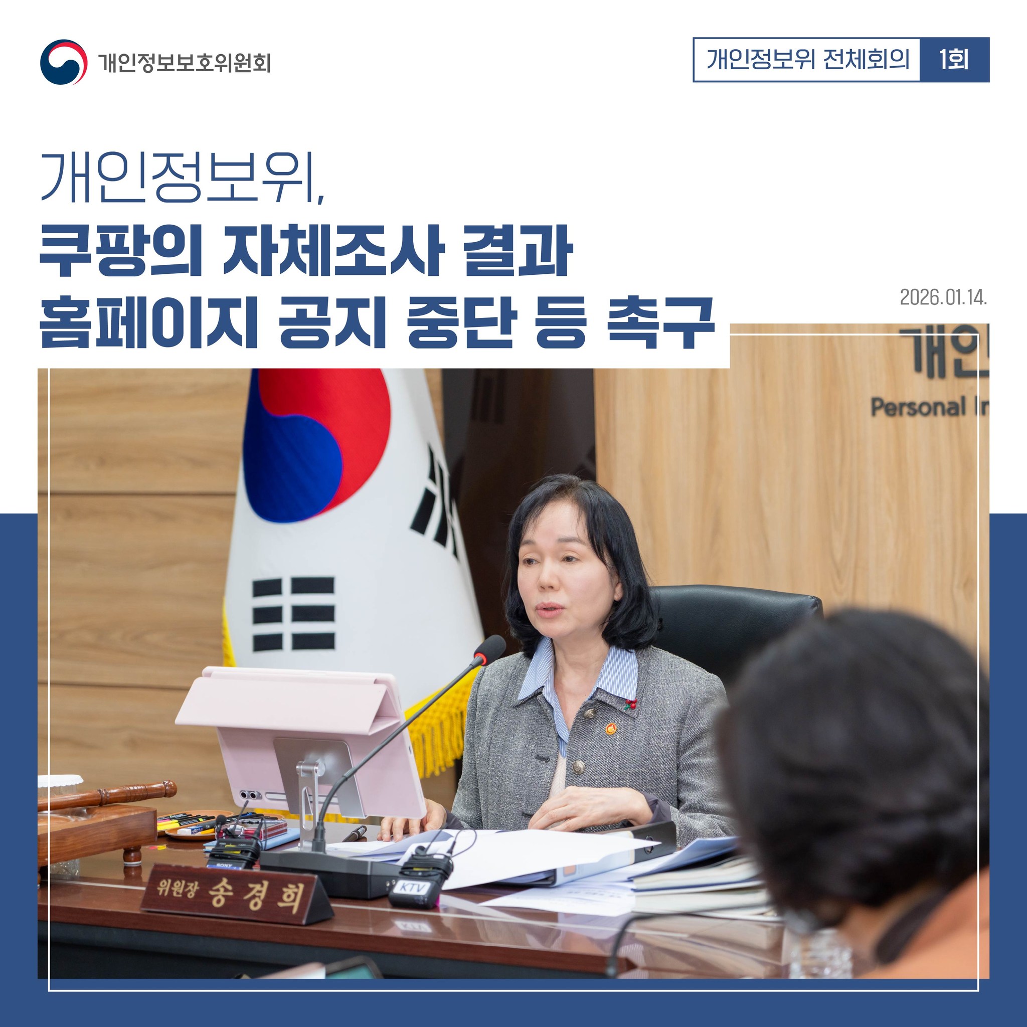 개인정보위, 쿠팡의 자체조사 결과 홈페이지 공지 중단 등 촉구